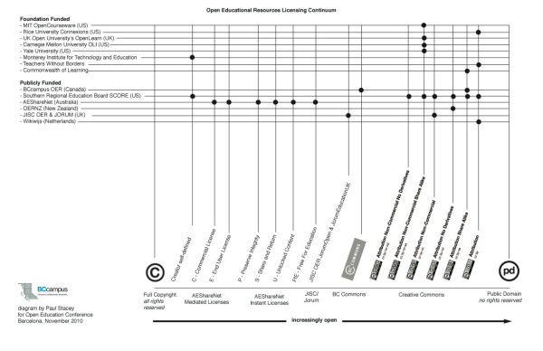 Paul has constructed an interesting chart that plots various OER projects with their associated licensing terms.