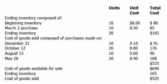 Under this procedure, the inventory composition and balance are updated with each purchase and sale. Each time a sale occurs, the items sold are assumed to be the most recent ones acquired. Despite numerous purchases and sales during the year, the ending inventory still includes the units from beginning inventory.