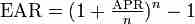 To find the effective APR, the actual amount of interest you would accrue per year, we use the Effective Annual Rate, or EAR.