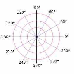 A polar grid with several angles labeled in degrees