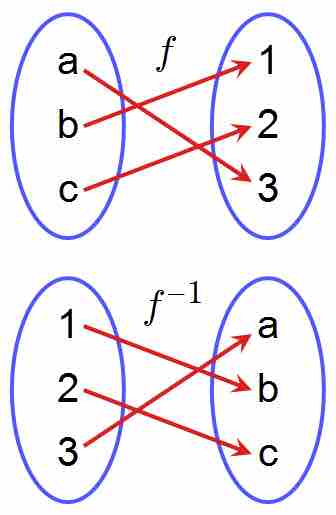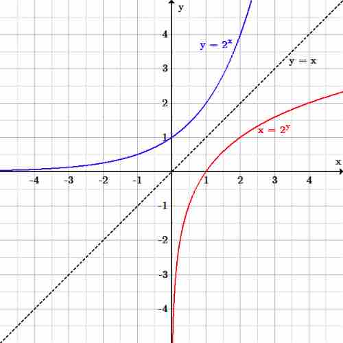 The function graph (red) and its inverse function graph (blue) are reflected about the line