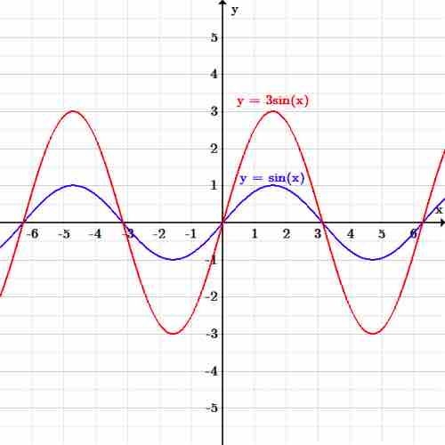 If we want to vertically stretch the function by a factor of three, then the new function becomes: