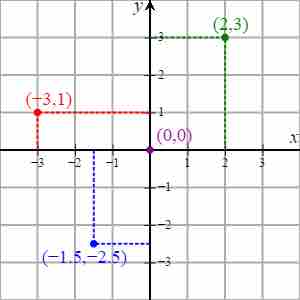 A Cartesian coordinate system is used to graph points. Points are specified uniquely in the Cartesian plane by a pair of numerical coordinates, which are the signed distances from the point to the two axes. Each point can be represented by an ordered pair