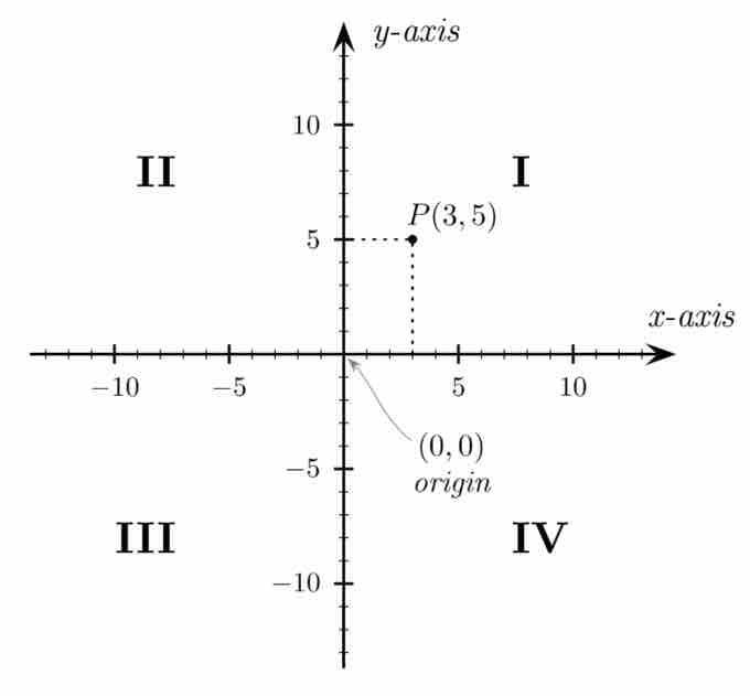 The Cartesian coordinate system is broken into four quadrants by the two axes. These quadrants are labeled I, II, III, and IV, starting from the upper right and continuing counter-clockwise, as pictured below.