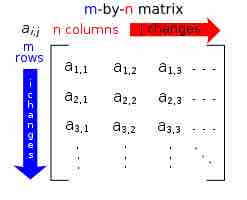 Each element of a matrix is often denoted by a variable with two subscripts. For instance,