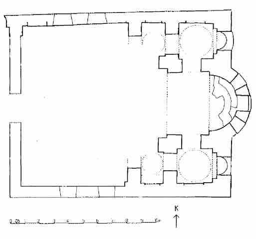 The plan of katholikon church provides the typical layout of Byzantine churches after the eighth century. Tirilye, Turkey.