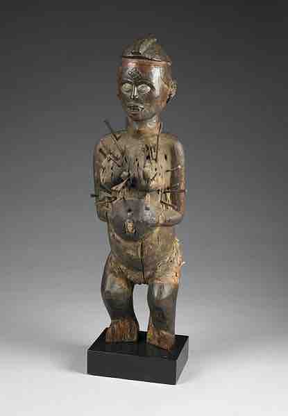While this figure was made by the Vili people, it is similar to the nkisi nkondi made by people in the Kongo Kingdom.