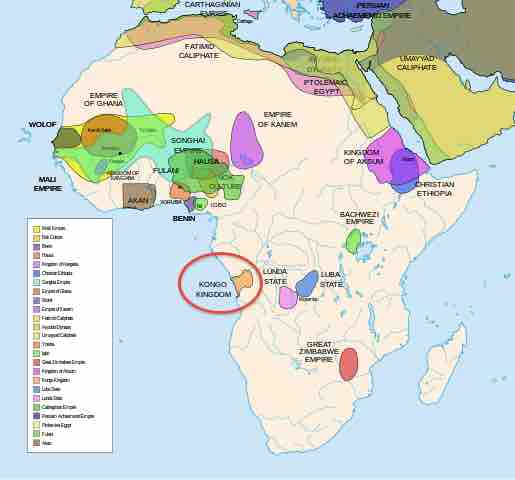The Kingdom of Kongo is circled in red.