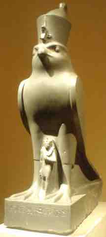Despite changes in the sculptures of Horus and Pataikos, this image of the last pharaoh of the Twenty-Sixth Dynasty appears in the more traditional stylized form.
