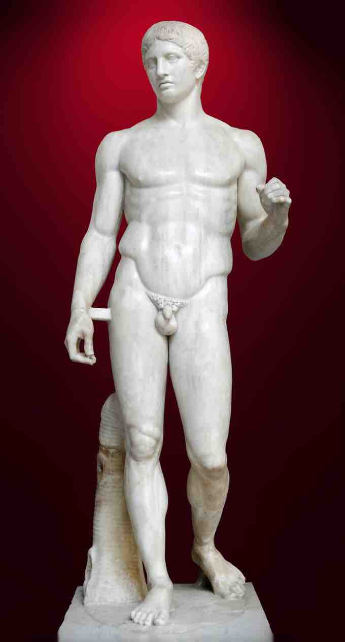 Polykleitos, Doryphoros. Roman marble copy of a Greek bronze original c. 450 BCE.
