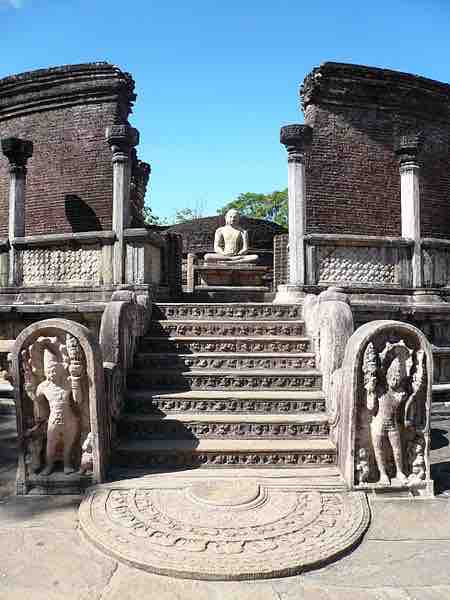 Another architectural creation associated with stupas and unique to ancient Sri Lankan architecture was the Vatadage, a circular Buddhist structure built around small stupas. These were usually made of stone and brick and elaborately carved. They may have also had wooden roofs that were supported by stone columns arranged in concentric rows.