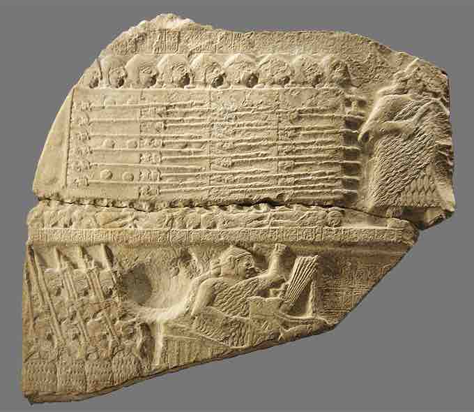 Battle formations on a fragment of the Stele of the Vultures. Example of Sumerian pictorial cuneiform writing.
