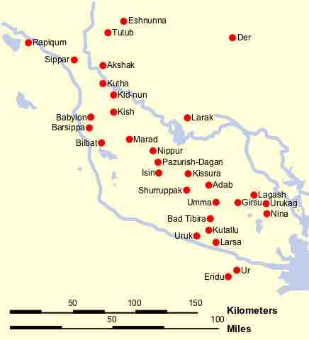 Map of the Cities of Sumer.