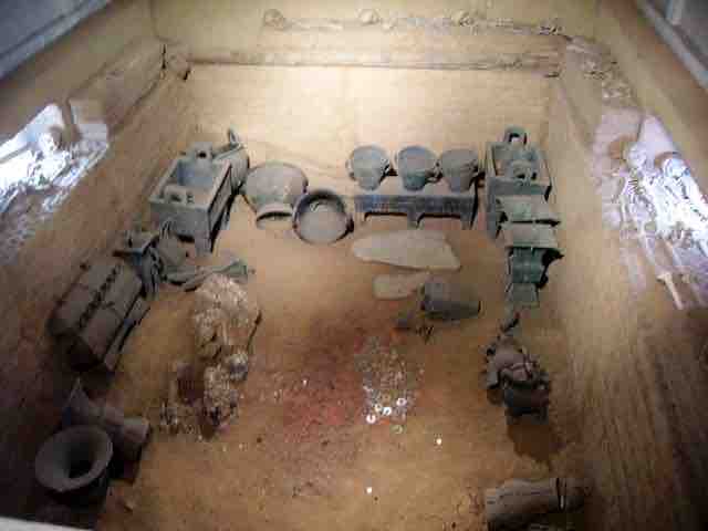 Many Shang royal tombs had been tunneled into and ravaged by grave robbers in ancient times; however, in the spring of 1976, the discovery of Tomb 5 at Yinxu revealed a tomb that was not only undisturbed, but one of the most richly furnished Shang tombs that archaeologists had yet come across. With over 200 bronze ritual vessels and 109 inscriptions of Lady Fu Hao's name, archaeologists realized they had stumbled across the tomb of the militant consort to King Wu Ding, as described in 170 to 180 Shang oracle bones. Bronze vessels, stoneware and pottery vessels, bronze weapons, jade figures, hair combs, and bone hairpins were found.