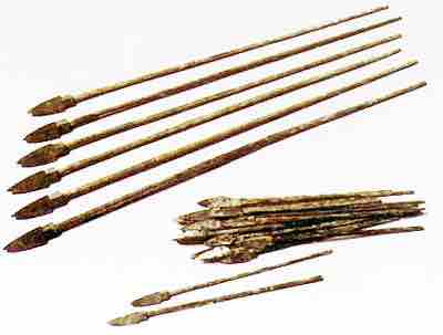 Picture of Qin Dynasty Arcuballista Bolts shown with Regular Handheld Crossbow Bolts, 5th- 3rd century B.C.
