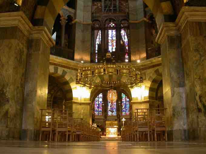 The Palatine Chapel in Aachen (792-805) demonstrates the Byzantine-influence on Carolingian architecture, evidenced by its octagonal style.