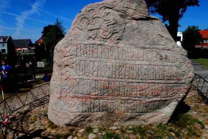 This Jelling Stone, with its depiction of Christ and celebration of the Conversion of the Danes, is widely regarded as Denmark's "baptismal certificate."