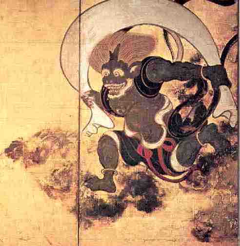 Portion of Sōtatsu's Fūjin Raijin-zu, "Wind and Thunder Gods". 17th century.