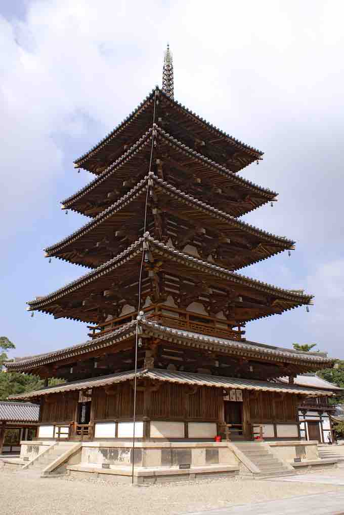 The five-storied pagoda has certain characteristics unique to Hōryū-ji.
