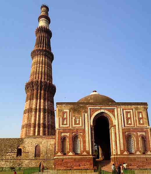 One of the earliest and best known of the Delhi Sultanate architectural monuments, and also the tallest minaret in India. Its accompanying gateway, the Alai Darwaza, bears the first surviving true dome in India.