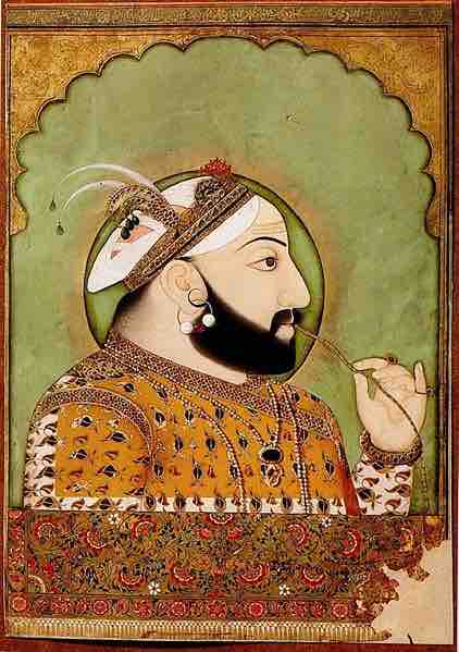 Udaipur, Mewar, 1725–35. Opaque watercolor on paper, set with pearls and precious stones. This is a good example of portraiture in the Rajput style and of the Mewar School's work.