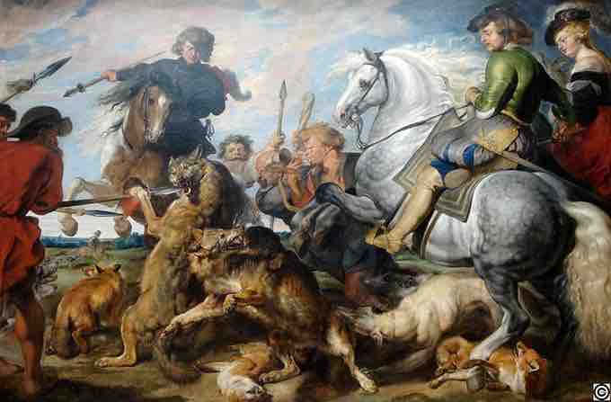 Wolf and Fox Hunt is an example of the monumental hunting scene Rubens introduced to painting.