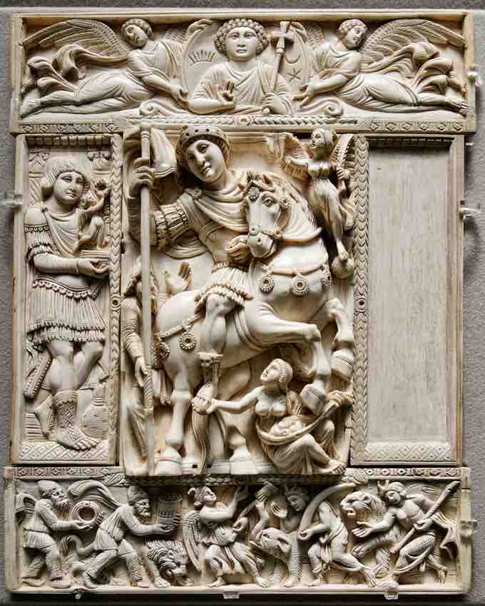 The Barberini Diptych is an early example of Byzantine ivory work. Musée du Louvre, Paris. c. 500-550 CE.