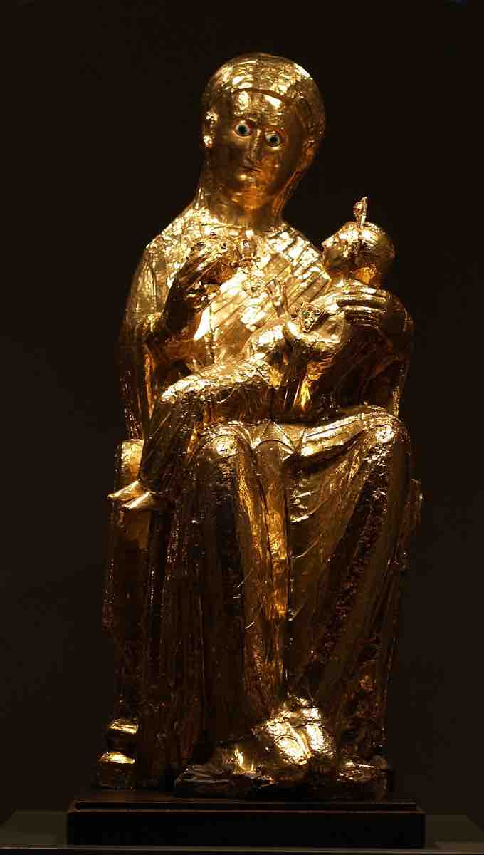 The Golden Madonna of Essen has a wood core covered by thin gold leaf. c. 980.