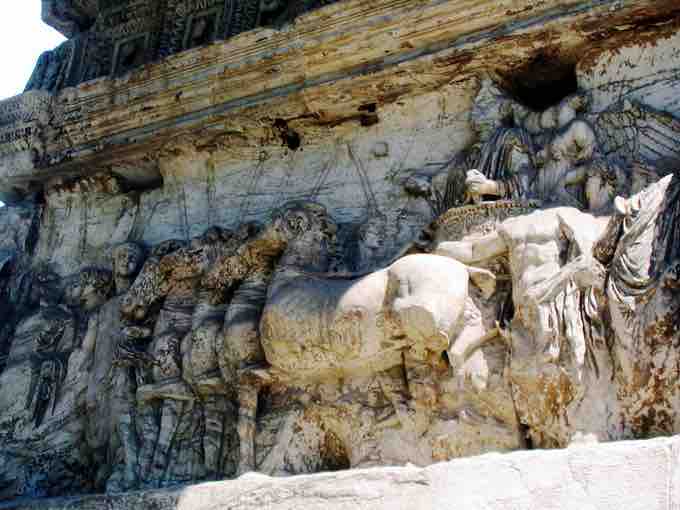 Sacking of Jerusalem relief from the Arch of Titus. Marble. c. 81 CE. Rome, Italy.