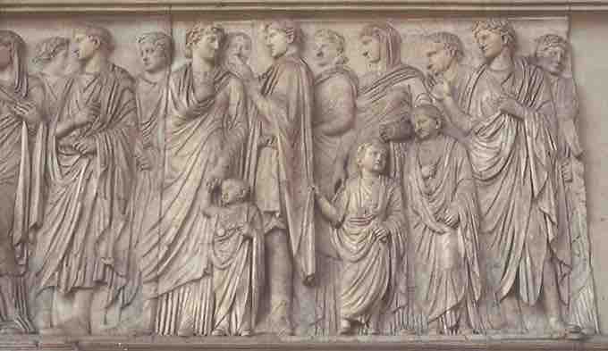Detail from the processional scene on the south wall. Marble. 13-9 BCE. Rome, Italy.