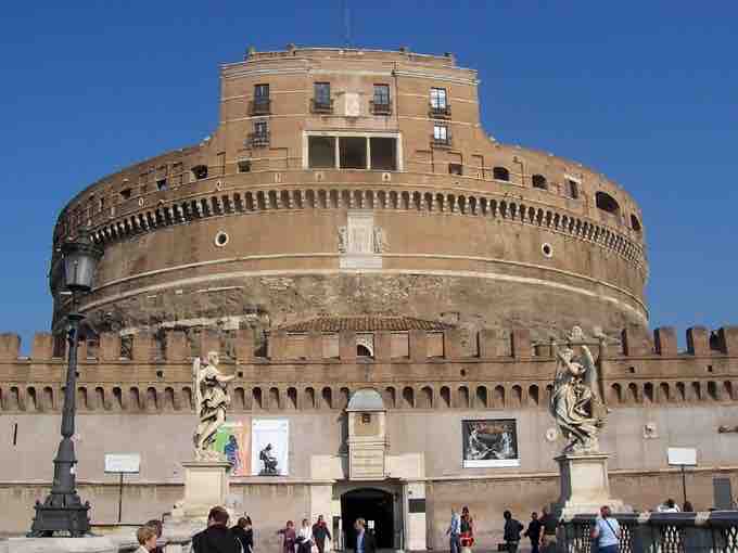 The Mausoleum of Hadrian was a large cylinder topped by a garden and quadriga statue. A central room housed the ashes of Hadrian and his family, as well as several of the emperors who succeeded him.