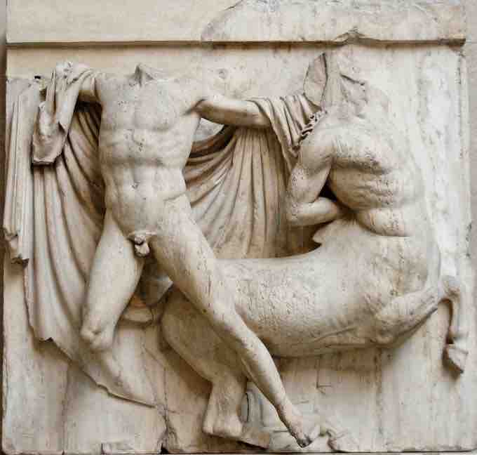Metope from the south side of the Parthenon, of a Lapis and a Centuar. Acropolis, Athens, Greece. ca. 447-438 BCE.