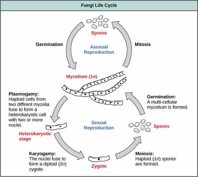 Fungi may utilize both asexual and sexual stages of reproduction; sexual reproduction often occurs in response to adverse environmental conditions.