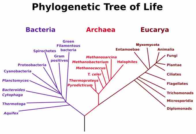 Many evolutionary relationships in the modern tree have only recently been determined due to molecular evidence. Nucleic acid and protein analyses have informed the construction of the modern phylogenetic animal tree. These data come from a variety of molecular sources, such as mitochondrial DNA, nuclear DNA, ribosomal RNA (rRNA), and certain cellular proteins. Evolutionary trees can be made by the determination of sequence information of similar genes in different organisms . Sequences that are similar to each other frequently are considered to have less time to diverge, while less similar sequences have more evolutionary time to diverge. The evolutionary tree is created by aligning sequences and having each branch length proportional to the amino acid differences of the sequences. Furthermore, by assigning a constant mutation rate to a sequence and performing a sequence alignment, it is possible to calculate the approximate time when the sequence of interest diverged into monophyletic groups.