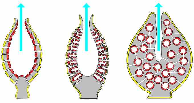 Sponges reproduce by sexual, as well as, asexual methods. The typical means of asexual reproduction is either fragmentation (where a piece of the sponge breaks off, settles on a new substrate, and develops into a new individual) or budding (a genetically-identical outgrowth from the parent eventually detaches or remains attached to form a colony). An atypical type of asexual reproduction is found only in freshwater sponges, occurring through the formation of gemmules. Gemmules are environmentally-resistant structures produced by adult sponges wherein the typical sponge morphology is inverted. In gemmules, an inner layer of amoebocytes is surrounded by a layer of collagen (spongin) that may be reinforced by spicules. The collagen that is normally found in the mesohyl becomes the outer protective layer. In freshwater sponges, gemmules may survive hostile environmental conditions such as changes in temperature. They serve to recolonize the habitat once environmental conditions stabilize. Gemmules are capable of attaching to a substratum and generating a new sponge. Since gemmules can withstand harsh environments, are resistant to desiccation, and remain dormant for long periods, they are an excellent means of colonization for a sessile organism.