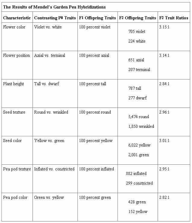 To fully examine each of the seven traits in garden peas, Mendel generated large numbers of F1 and F2 plants, reporting results from 19,959 F2 plants alone. His findings were consistent.