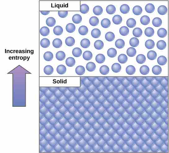 An important concept in physical systems is disorder (also known as randomness). The more energy that is lost by a system to its surroundings, the less ordered and more random the system is. Scientists define the measure of randomness or disorder within a system as entropy. High entropy means high disorder and low energy. To better understand entropy, remember that it requires energy to maintain structure. For example, think about an ice cube. It is made of water molecules bound together in an orderly lattice. This arrangement takes energy to maintain. When the ice cube melts and becomes water, its molecules are more disordered, in a random arrangement as opposed to a structure. Overall, there is less energy in the system inside the molecular bonds. Therefore, water can be said to have greater entropy than ice.