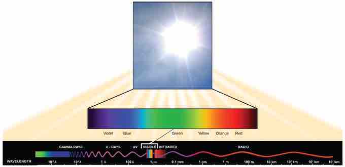 Visible light constitutes only one of many types of electromagnetic radiation emitted from the sun and other stars. The electromagnetic spectrum is the range of all possible frequencies of radiation . The electromagnetic spectrum shows several types of electromagnetic radiation originating from the sun, including X-rays and ultraviolet (UV) rays. The higher-energy waves can penetrate tissues and damage cells and DNA, which explains why both X-rays and UV rays can be harmful to living organisms. Scientists differentiate the various types of radiant energy from the sun within the electromagnetic spectrum.The difference between wavelengths relates to the amount of energy carried by them.