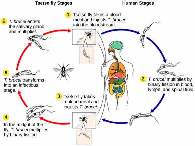 Trypanosoma brucei, the causative agent of sleeping sickness, spends part of its life cycle in the tsetse fly and part in humans.
