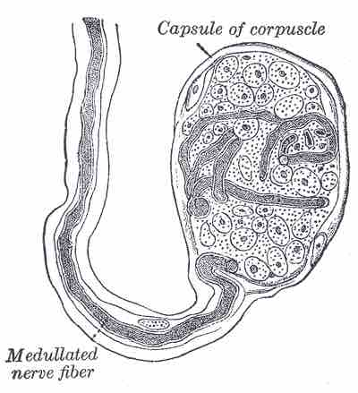 Some of the receptors that exhibit the ability to detect changes in temperature include Krause end bulbs and Ruffini endings. Krause end bulbs are defined by cylindrical or oval bodies consisting of a capsule that is formed by the expansion of the connective-tissue sheath, containing an axis-cylinder core . End-bulbs are found in the conjunctiva of the eye, in the mucous membrane of the lips and tongue, and in the epineurium of nerve trunks. They are also found in the penis and the clitoris; hence, the name of genital corpuscles. In these locations, they have a mulberry-like appearance, being constricted by connective-tissue septa into two to six knob-like masses.