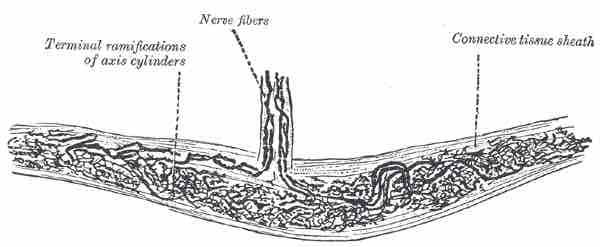 A drawing of a Ruffini ending receptor which can detect warmth.