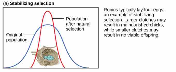 If natural selection favors an average phenotype by selecting against extreme variation, the population will undergo stabilizing selection. For example, in a population of mice that live in the woods, natural selection will tend to favor individuals that best blend in with the forest floor and are less likely to be spotted by predators. Assuming the ground is a fairly consistent shade of brown, those mice whose fur is most-closely matched to that color will most probably survive and reproduce, passing on their genes for their brown coat. Mice that carry alleles that make them slightly lighter or slightly darker will stand out against the ground and will more probably die from predation. As a result of this stabilizing selection, the population's genetic variance will decrease.