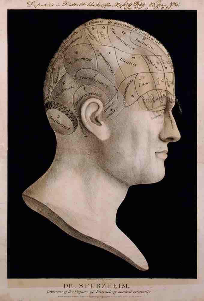 Phrenology: Dr. Spurzheim's divisions of the organs of phrenology marked externally