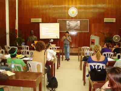 Training can be conducted in many ways, such as in a lecture or classroom format (above), online, or any number of ways.