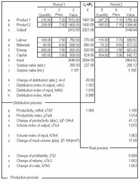 With the help of productivity models, it is possible to calculate the performance of the production process. The starting point is a profitability calculation, using surplus value as a criterion of profitability. The surplus value calculation is the only valid measure for understanding the connection between profitability and productivity. A valid measurement of total productivity necessitates considering all production inputs, and the surplus value calculation is the only calculation to conform to that requirement .