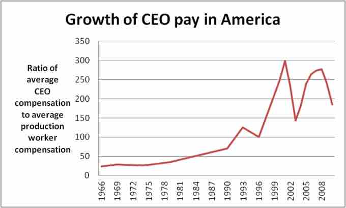In general, the compensation of CEOs in the United States has risen to over 400 times the salary of the average U.S. worker, compared to about 30 times only a few decades ago . This is different from other countries where the disparity is not so great.