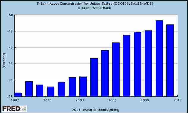 Percent of Industry Assets Owned by the Largest 5 Banks