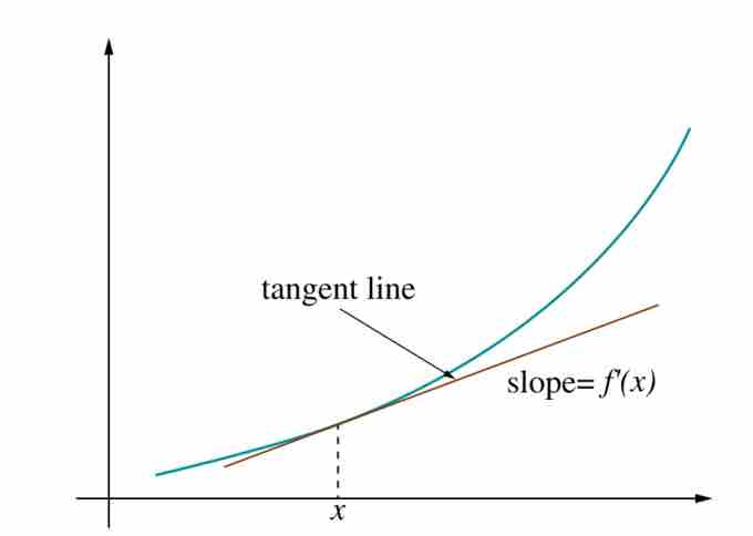 The slope of tangent line shown represents the value of the derivative of the curved function at the point