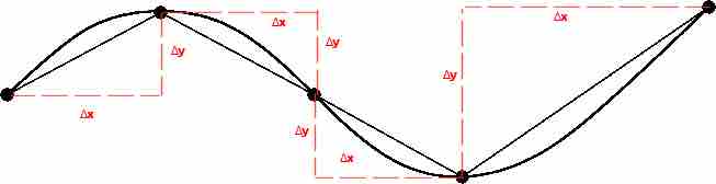 The length of a curve can be approximated by using a series of right triangles with the hypotenuses lying along the curve. The smaller the triangles one uses, the closer the approximation will be.