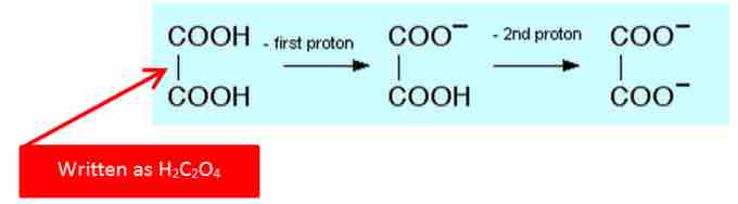 This image shows how Oxalic Acid will lose two protons in successive dissociations.